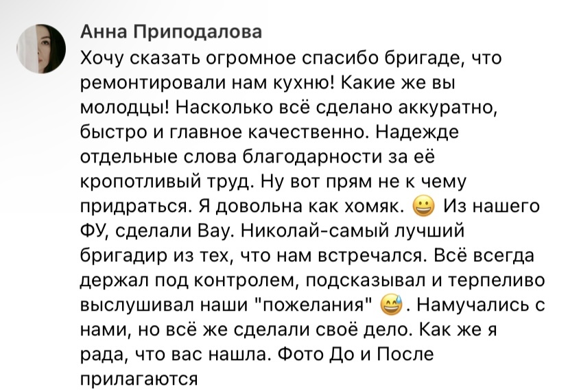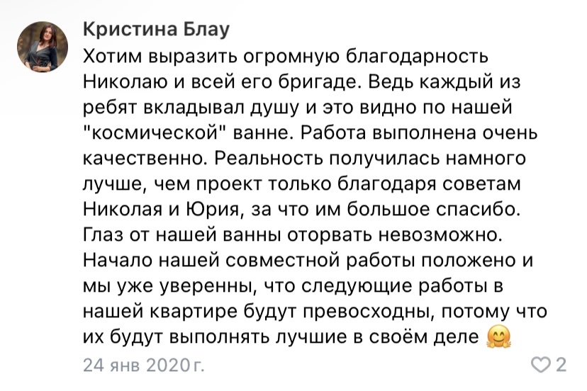 Закупка и доставка материала, регулярные фото и видео отчеты. Вы принимаете каждый этап работы и после этого его оплачиваете. В конце мы убираем и вывозим строительный мусор.